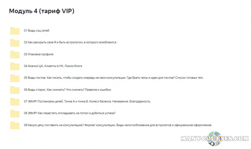 Вы находитесь на странице товара «Лиза Васина - Астрология. Формула счастья. Тариф Вип», это материал 2022 года, который, мы надеемся, принесет вам пользу. Данный курс расположен на платформе «Яндекс Диск».Скриншоты с платформы на которой расположены материалы вы можете найти выше. В нашем магазине курсы доступны по самым выгодным ценам. Вы можете перейти на оригинальный продажник, после чего принять решение о покупке. Если бы вы покупали у самого автора, то данный курс вам обошелся 34900 рублей. Вы получаете этот курс, купив в нашем магазине MANY-COURSES.NET, с огромной скидкой, всего 400 рублей. Обучающий курс входит в рубрику «Курсы от Лизы Васиной / Эзотерика и оккультизм / Астрология», вы можете поискать другие сливы курсов в этой рубрике. В нашем магазине Вы найдёте ещё много курсов от автора «Лиза Васина», достаточно ввести в поиск имя автора.