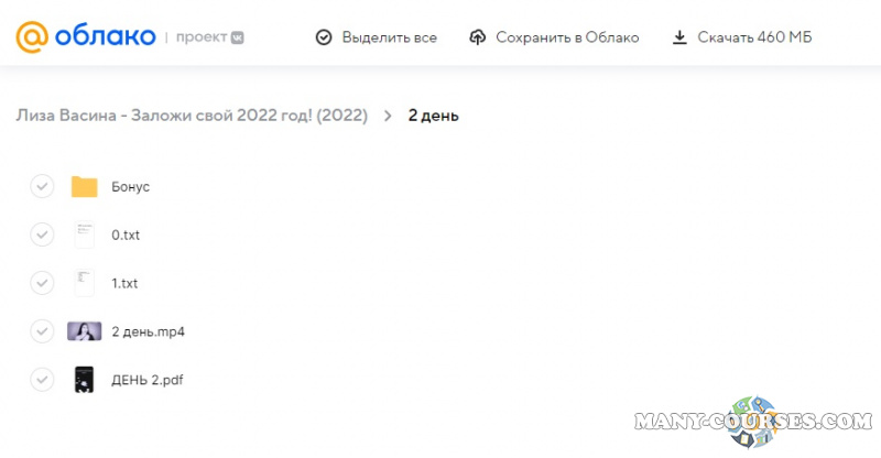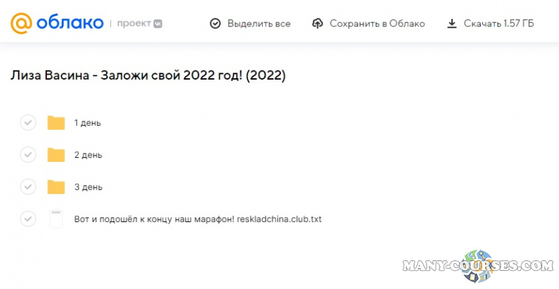 Вы находитесь на странице товара «Лиза Васина - Заложи свой 2022 год!», это материал 2022 года, который, мы надеемся, принесет вам пользу. Данный курс расположен на платформе «Облако Mail».Скриншоты с платформы на которой расположены материалы вы можете найти выше. В нашем магазине курсы доступны по самым выгодным ценам. Вы можете перейти на оригинальный продажник, после чего принять решение о покупке. Если бы вы покупали у самого автора, то данный курс вам обошелся 6990 рублей. Вы получаете этот курс, купив в нашем магазине MANY-COURSES.NET, с огромной скидкой, всего 290 рублей. Обучающий курс входит в рубрику «Курсы от Лизы Васиной / Эзотерика и оккультизм / Психология», вы можете поискать другие сливы курсов в этой рубрике. В нашем магазине Вы найдёте ещё много курсов от автора «Лиза Васина», достаточно ввести в поиск имя автора.