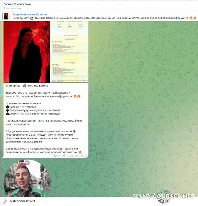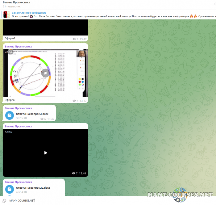 Вы находитесь на странице товара «Лиза Васина - Прогностика: транзиты, прогрессии. Тариф VIP (2023-2024)», это материал 2023 года, который, мы надеемся, принесет вам пользу. Данный курс расположен на платформе «Канал Telegram».Скриншоты с платформы на которой расположены материалы вы можете найти выше. В нашем магазине курсы доступны по самым выгодным ценам. Если бы вы покупали у самого автора, то данный курс вам обошелся 199000 рублей. Вы получаете этот курс, купив в нашем магазине MANY-COURSES.NET, с огромной скидкой, всего 1990 рублей. Обучающий курс входит в рубрику «Курсы от Лизы Васиной / Эзотерика и оккультизм / Астрология / Нумерология / Психология», вы можете поискать другие сливы курсов в этой рубрике. В нашем магазине Вы найдёте ещё много курсов от автора «Лиза Васина», достаточно ввести в поиск имя автора.