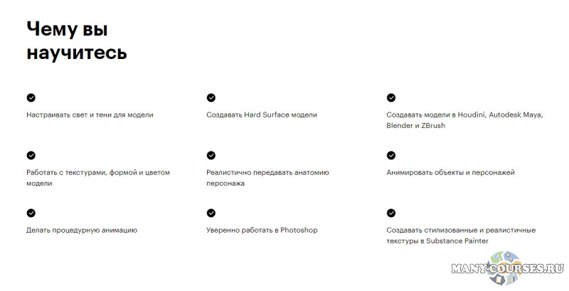 - Создавать модели в Houdini, Autodesk Maya и ZBrush