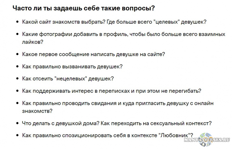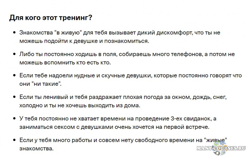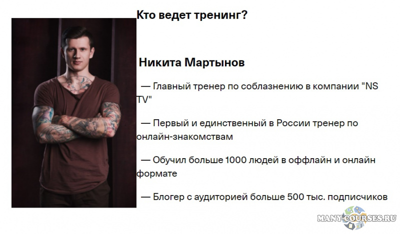 Вы находитесь на странице товара «NS TV / Никита Мартынов - Знакомства в сети (2020)», это материал 2020 года, который, мы надеемся, принесет вам пользу. Скриншоты с платформы на которой расположены материалы вы можете найти выше. В нашем магазине курсы доступны по самым выгодным ценам. Вы можете перейти на оригинальный продажник, после чего принять решение о покупке. Если бы вы покупали у самого автора, то данный курс вам обошелся 3490 рублей. Вы получаете этот курс, купив в нашем магазине MANY-COURSES.NET, с огромной скидкой, всего 99 рублей. Обучающий курс входит в рубрику «Соблазнение и пикап», вы можете поискать другие сливы курсов в этой рубрике. В нашем магазине Вы найдёте ещё много курсов от автора «NS TV / Никита Мартынов», достаточно ввести в поиск имя автора.