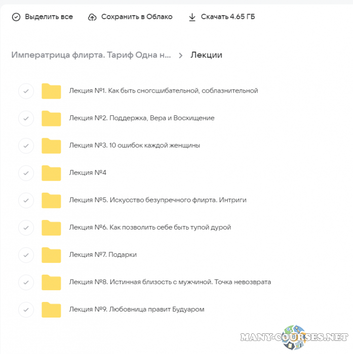 Вы находитесь на странице товара «Наталья Герасимова - Императрица флирта. Тариф Одна на миллион», это материал 2024 года, который, мы надеемся, принесет вам пользу. Данный курс расположен на платформе «Облако Mail».Скриншоты с платформы на которой расположены материалы вы можете найти выше. В нашем магазине курсы доступны по самым выгодным ценам. Вы можете перейти на оригинальный продажник, после чего принять решение о покупке. Если бы вы покупали у самого автора, то данный курс вам обошелся 99000 рублей. Вы получаете этот курс, купив в нашем магазине MANY-COURSES.NET, с огромной скидкой, всего 990 рублей. Обучающий курс входит в рубрику «Соблазнение и пикап», вы можете поискать другие сливы курсов в этой рубрике. В нашем магазине Вы найдёте ещё много курсов от автора «Наталья Герасимова», достаточно ввести в поиск имя автора.