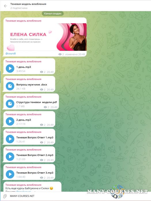 Вы находитесь на странице товара «Елена Силка - Теневая модель влюбления», это материал 2024 года, который, мы надеемся, принесет вам пользу. Данный курс расположен на платформе «Канал Telegram».Скриншоты с платформы на которой расположены материалы вы можете найти выше. В нашем магазине курсы доступны по самым выгодным ценам. Вы можете перейти на оригинальный продажник, после чего принять решение о покупке. Вы получаете этот курс, купив в нашем магазине MANY-COURSES.NET, с огромной скидкой, всего 1990 рублей. Обучающий курс входит в рубрику «Соблазнение и пикап», вы можете поискать другие сливы курсов в этой рубрике. В нашем магазине Вы найдёте ещё много курсов от автора «Елена Силка», достаточно ввести в поиск имя автора.