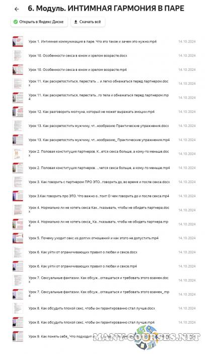 Вы находитесь на странице товара «Ева Снежинская - Высшее любовное мастерство 3.0. Тариф Премиум», это материал 2023 года, который, мы надеемся, принесет вам пользу. Данный курс расположен на платформе «Яндекс Диск».Скриншоты с платформы на которой расположены материалы вы можете найти выше. В нашем магазине курсы доступны по самым выгодным ценам. Вы получаете этот курс, купив в нашем магазине MANY-COURSES.NET, с огромной скидкой, всего 750 рублей. Обучающий курс входит в рубрику «Соблазнение и пикап», вы можете поискать другие сливы курсов в этой рубрике. В нашем магазине Вы найдёте ещё много курсов от автора «Ева Снежинская», достаточно ввести в поиск имя автора.
