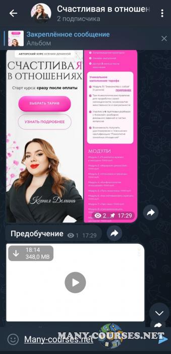 Вы находитесь на странице товара «Ксения Демина - Счастливая в отношениях. Тариф Все включено», это материал 2024 года, который, мы надеемся, принесет вам пользу. Данный курс расположен на платформе «Канал Telegram».Скриншоты с платформы на которой расположены материалы вы можете найти выше. В нашем магазине курсы доступны по самым выгодным ценам. Вы можете перейти на оригинальный продажник, после чего принять решение о покупке. Вы получаете этот курс, купив в нашем магазине MANY-COURSES.NET, с огромной скидкой, всего 1990 рублей. Обучающий курс входит в рубрику «Соблазнение и пикап», вы можете поискать другие сливы курсов в этой рубрике. В нашем магазине Вы найдёте ещё много курсов от автора «Ксения Демина», достаточно ввести в поиск имя автора.