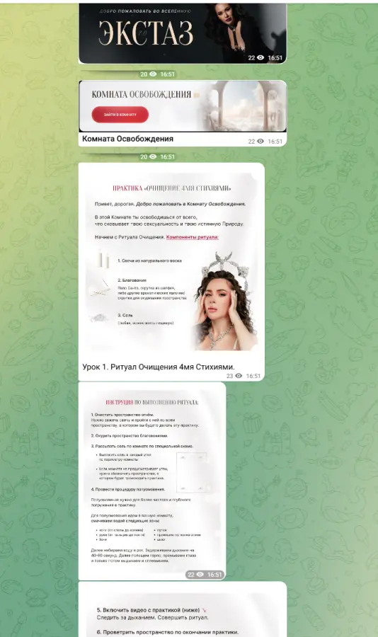 Вы находитесь на странице товара «nataytali - Интенсив Экстаз. Тариф 2. Блаженство», это материал который, мы надеемся, принесет вам пользу. Данный курс расположен на платформе «Канал Telegram».Скриншоты с платформы на которой расположены материалы вы можете найти выше. В нашем магазине курсы доступны по самым выгодным ценам. Вы можете перейти на оригинальный продажник, после чего принять решение о покупке. Если бы вы покупали у самого автора, то данный курс вам обошелся 14900 рублей. Вы получаете этот курс, купив в нашем магазине MANY-COURSES.NET, с огромной скидкой, всего 690 рублей. Обучающий курс входит в рубрику «Соблазнение и пикап», вы можете поискать другие сливы курсов в этой рубрике. В нашем магазине Вы найдёте ещё много курсов от автора «», достаточно ввести в поиск имя автора.