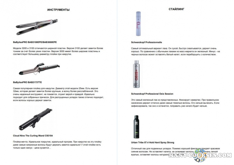 Список продуктов для стайлинга и инструментов, шпаргалки по накрутке, схемы причесок