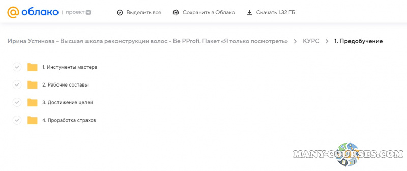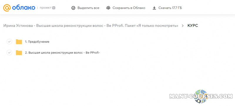 Вы находитесь на странице товара «Ирина Устинова - Высшая школа реконструкции волос - Be PProfi. Пакет «Я только посмотреть»», это материал 2022 года, который, мы надеемся, принесет вам пользу. Данный курс расположен на платформе «Облако Mail».Скриншоты с платформы на которой расположены материалы вы можете найти выше. В нашем магазине курсы доступны по самым выгодным ценам. Вы получаете этот курс, купив в нашем магазине MANY-COURSES.NET, с огромной скидкой, всего 500 рублей. Обучающий курс входит в рубрику «Стиль и имидж», вы можете поискать другие сливы курсов в этой рубрике. В нашем магазине Вы найдёте ещё много курсов от автора «Ирина Устинова», достаточно ввести в поиск имя автора.