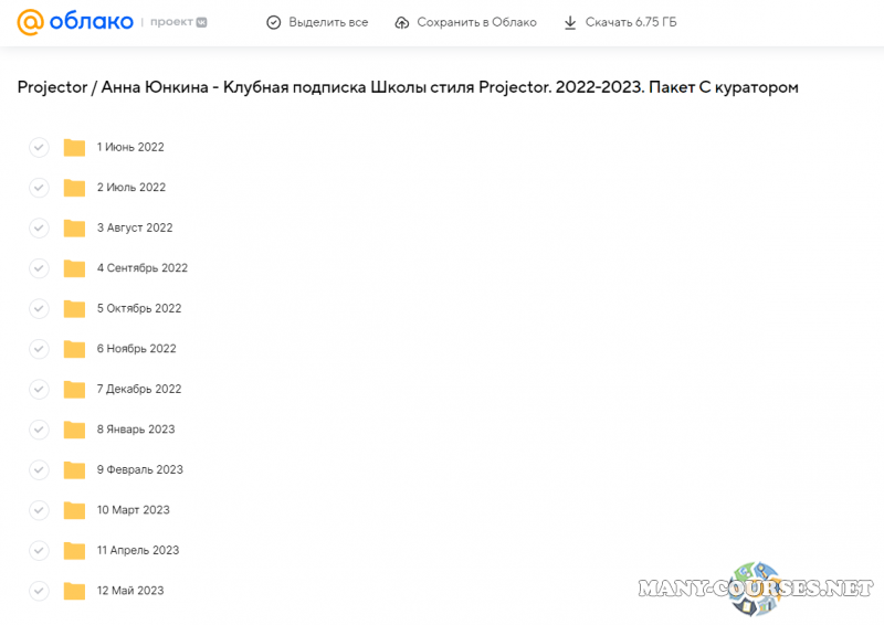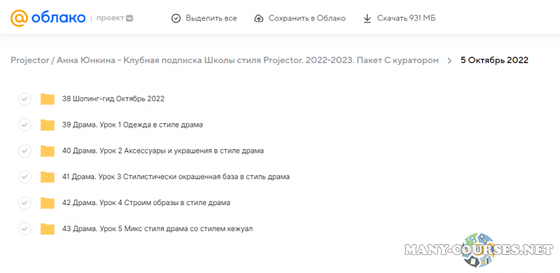 Вы находитесь на странице товара «Projector / Анна Юнкина - Клубная подписка Школы стиля Projector. Пакет С куратором», это материал 2023 года, который, мы надеемся, принесет вам пользу. Данный курс расположен на платформе «Яндекс Диск».Скриншоты с платформы на которой расположены материалы вы можете найти выше. В нашем магазине курсы доступны по самым выгодным ценам. Вы можете перейти на оригинальный продажник, после чего принять решение о покупке. Вы получаете этот курс, купив в нашем магазине MANY-COURSES.NET, с огромной скидкой, всего 650 рублей. Обучающий курс входит в рубрику «Стиль и имидж», вы можете поискать другие сливы курсов в этой рубрике. В нашем магазине Вы найдёте ещё много курсов от автора «Анна Юнкина», достаточно ввести в поиск имя автора.