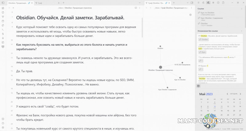 Что же именно будет в этом курсе? Мы с тобой пройдемся от самых основ к вершинам Obsidian. Рассмотрим: