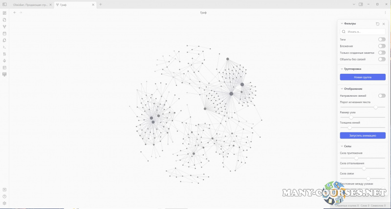 Позже, я смогу настроить эти связи вручную. Сделать сводную заметку, которая будет ссылаться на всё, что касаться этого курса конкретно и Obsidian в частности.