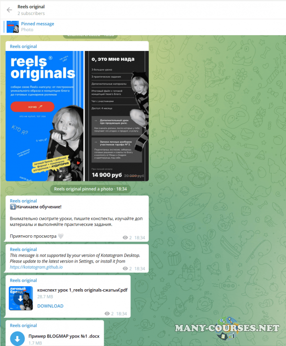 Вы находитесь на странице товара «Ксения Нефедьева - Reels originals. Тариф О, это мне надо (2024)», это материал 2024 года, который, мы надеемся, принесет вам пользу. Данный курс расположен на платформе «Канал Telegram».Скриншоты с платформы на которой расположены материалы вы можете найти выше. В нашем магазине курсы доступны по самым выгодным ценам. Вы можете перейти на оригинальный продажник, после чего принять решение о покупке. Если бы вы покупали у самого автора, то данный курс вам обошелся 14900 рублей. Вы получаете этот курс, купив в нашем магазине MANY-COURSES.NET, с огромной скидкой, всего 1490 рублей. Обучающий курс входит в рубрику «Видео и фото / Курсы по Reels », вы можете поискать другие сливы курсов в этой рубрике. В нашем магазине Вы найдёте ещё много курсов от автора «Ксения Нефедьева», достаточно ввести в поиск имя автора.