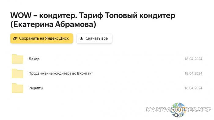 Вы находитесь на странице товара «Екатерина Абрамова - WOW – кондитер. Тариф Топовый кондитер (2024)», это материал 2024 года, который, мы надеемся, принесет вам пользу. Данный курс расположен на платформе «Яндекс Диск».Скриншоты с платформы на которой расположены материалы вы можете найти выше. В нашем магазине курсы доступны по самым выгодным ценам. Вы можете перейти на оригинальный продажник, после чего принять решение о покупке. Если бы вы покупали у самого автора, то данный курс вам обошелся 19900 рублей. Вы получаете этот курс, купив в нашем магазине MANY-COURSES.NET, с огромной скидкой, всего 890 рублей. Обучающий курс входит в рубрику «Кулинария», вы можете поискать другие сливы курсов в этой рубрике. В нашем магазине Вы найдёте ещё много курсов от автора «Екатерина Абрамова», достаточно ввести в поиск имя автора.