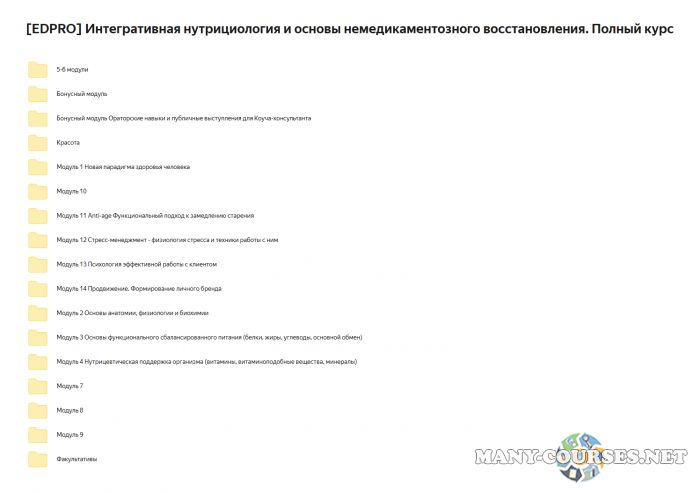 Вы находитесь на странице товара «EDPRO - Интегративная нутрициология и основы немедикаментозного восстановления», это материал 2021 года, который, мы надеемся, принесет вам пользу. Данный курс расположен на платформе «Облако Mail».Скриншоты с платформы на которой расположены материалы вы можете найти выше. В нашем магазине курсы доступны по самым выгодным ценам. Вы можете перейти на оригинальный продажник, после чего принять решение о покупке. Если бы вы покупали у самого автора, то данный курс вам обошелся 78000 рублей. Вы получаете этот курс, купив в нашем магазине MANY-COURSES.NET, с огромной скидкой, всего 890 рублей. Обучающий курс входит в рубрику «Здоровье и Спорт», вы можете поискать другие сливы курсов в этой рубрике. В нашем магазине Вы найдёте ещё много курсов от автора «EDPRO», достаточно ввести в поиск имя автора.