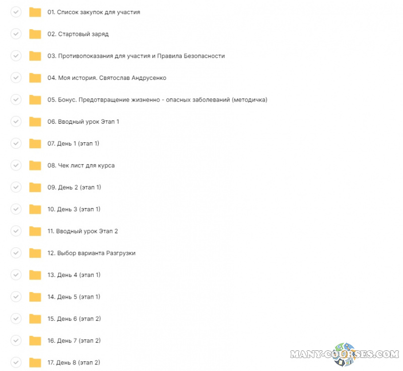 Вы находитесь на странице товара «Святослав Андрусенко - Очищение на живом питании за 30 дней. Пакет Базовый», это материал 2021 года, который, мы надеемся, принесет вам пользу. Данный курс расположен на платформе «Облако Mail».Скриншоты с платформы на которой расположены материалы вы можете найти выше. В нашем магазине курсы доступны по самым выгодным ценам. Вы получаете этот курс, купив в нашем магазине MANY-COURSES.NET, с огромной скидкой, всего 240 рублей. Обучающий курс входит в рубрику «Здоровье и Спорт», вы можете поискать другие сливы курсов в этой рубрике. В нашем магазине Вы найдёте ещё много курсов от автора «Святослав Андрусенко», достаточно ввести в поиск имя автора.