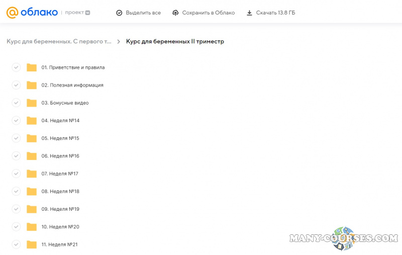 Вы находитесь на странице товара «Екатерина Усманова - Курс для беременных. С первого триместра до родов», это материал 2022 года, который, мы надеемся, принесет вам пользу. Данный курс расположен на платформе «Облако Mail».Скриншоты с платформы на которой расположены материалы вы можете найти выше. В нашем магазине курсы доступны по самым выгодным ценам. Вы получаете этот курс, купив в нашем магазине MANY-COURSES.NET, с огромной скидкой, всего 590 рублей. Обучающий курс входит в рубрику «Здоровье и Спорт», вы можете поискать другие сливы курсов в этой рубрике. В нашем магазине Вы найдёте ещё много курсов от автора «Екатерина Усманова», достаточно ввести в поиск имя автора.