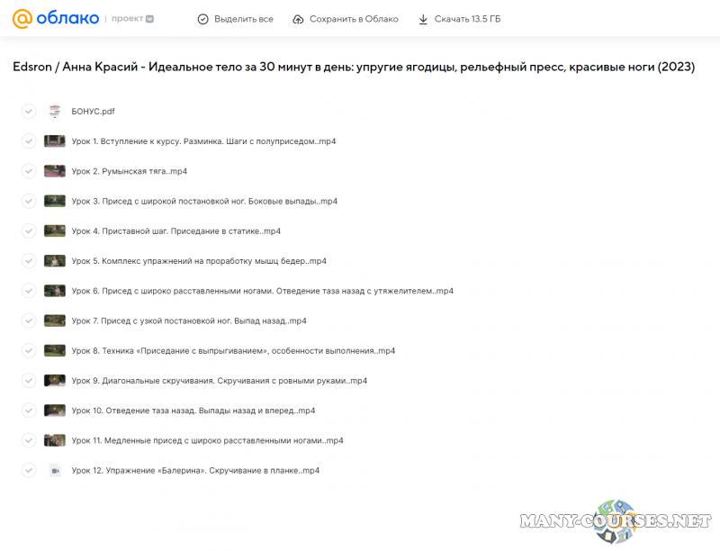 Вы находитесь на странице товара «Edsron / Анна Красий - Идеальное тело за 30 минут в день: упругие ягодицы, рельефный пресс, красивые ноги (2023)», это материал 2023 года, который, мы надеемся, принесет вам пользу. Данный курс расположен на платформе «Облако Mail».Скриншоты с платформы на которой расположены материалы вы можете найти выше. В нашем магазине курсы доступны по самым выгодным ценам. Вы можете перейти на оригинальный продажник, после чего принять решение о покупке. Если бы вы покупали у самого автора, то данный курс вам обошелся 1500 рублей. Вы получаете этот курс, купив в нашем магазине MANY-COURSES.NET, с огромной скидкой, всего 350 рублей. Обучающий курс входит в рубрику «Здоровье и Спорт», вы можете поискать другие сливы курсов в этой рубрике. В нашем магазине Вы найдёте ещё много курсов от автора «Анна Красий», достаточно ввести в поиск имя автора.