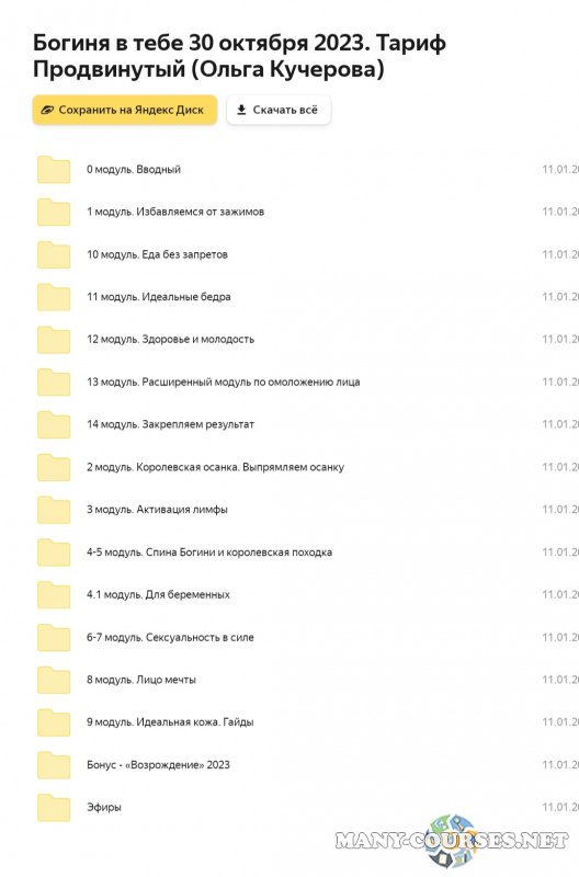 Вы находитесь на странице товара «Ольга Кучерова - Богиня в тебе. Курс против отеков и для здоровой спины. Тариф Продвинутый 30 октября 2023», это материал 2023 года, который, мы надеемся, принесет вам пользу. Данный курс расположен на платформе «Канал Telegram».Скриншоты с платформы на которой расположены материалы вы можете найти выше. В нашем магазине курсы доступны по самым выгодным ценам. Вы можете перейти на оригинальный продажник, после чего принять решение о покупке. Если бы вы покупали у самого автора, то данный курс вам обошелся 59900 рублей. Вы получаете этот курс, купив в нашем магазине MANY-COURSES.NET, с огромной скидкой, всего 1690 рублей. Обучающий курс входит в рубрику «Здоровье и Спорт / Саморазвитие и мотивация», вы можете поискать другие сливы курсов в этой рубрике. В нашем магазине Вы найдёте ещё много курсов от автора «Ольга Кучерова», достаточно ввести в поиск имя автора.