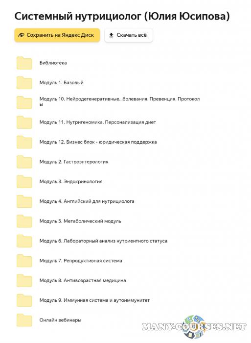 Вы находитесь на странице товара «Юлия Юсипова - Системный нутрициолог. Головой курс», это материал 2023 года, который, мы надеемся, принесет вам пользу. Данный курс расположен на платформе «Яндекс Диск».Скриншоты с платформы на которой расположены материалы вы можете найти выше. В нашем магазине курсы доступны по самым выгодным ценам. Вы получаете этот курс, купив в нашем магазине MANY-COURSES.NET, с огромной скидкой, всего 1990 рублей. Обучающий курс входит в рубрику «Здоровье и Спорт», вы можете поискать другие сливы курсов в этой рубрике. В нашем магазине Вы найдёте ещё много курсов от автора «Юлия Юсипова», достаточно ввести в поиск имя автора.