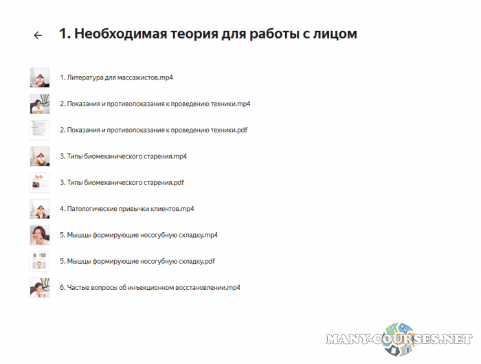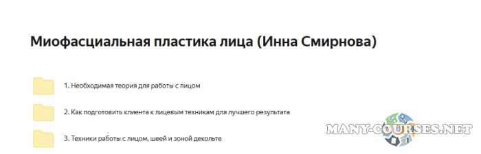 Вы находитесь на странице товара «Инна Смирнова - Миофасциальная пластика лица», это материал 2024 года, который, мы надеемся, принесет вам пользу. Данный курс расположен на платформе «Яндекс Диск».Скриншоты с платформы на которой расположены материалы вы можете найти выше. В нашем магазине курсы доступны по самым выгодным ценам. Вы получаете этот курс, купив в нашем магазине MANY-COURSES.NET, с огромной скидкой, всего 1590 рублей. Обучающий курс входит в рубрику «Здоровье и Спорт», вы можете поискать другие сливы курсов в этой рубрике. В нашем магазине Вы найдёте ещё много курсов от автора «Инна Смирнова», достаточно ввести в поиск имя автора.