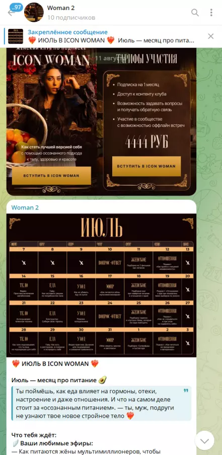 Icon Woman — закрытый клуб в Телеграме с прямыми эфирами на тему красоты, женственности и здоровья