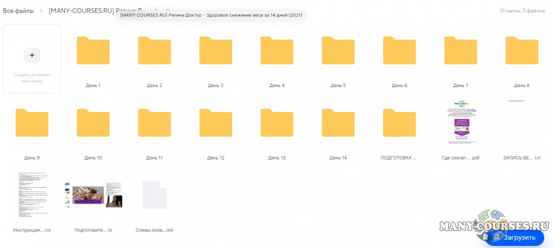 Вы находитесь на странице товара «Регина Доктор - Здоровое снижение веса за 14 дней», это материал 2021 года, который, мы надеемся, принесет вам пользу. Данный курс расположен на платформе «Облако Mail».Скриншоты с платформы на которой расположены материалы вы можете найти выше. В нашем магазине курсы доступны по самым выгодным ценам. Если бы вы покупали у самого автора, то данный курс вам обошелся 6900 рублей. Вы получаете этот курс, купив в нашем магазине MANY-COURSES.NET, с огромной скидкой, всего 190 рублей. Обучающий курс входит в рубрику «Здоровье и Спорт», вы можете поискать другие сливы курсов в этой рубрике. В нашем магазине Вы найдёте ещё много курсов от автора «Регина Доктор», достаточно ввести в поиск имя автора.